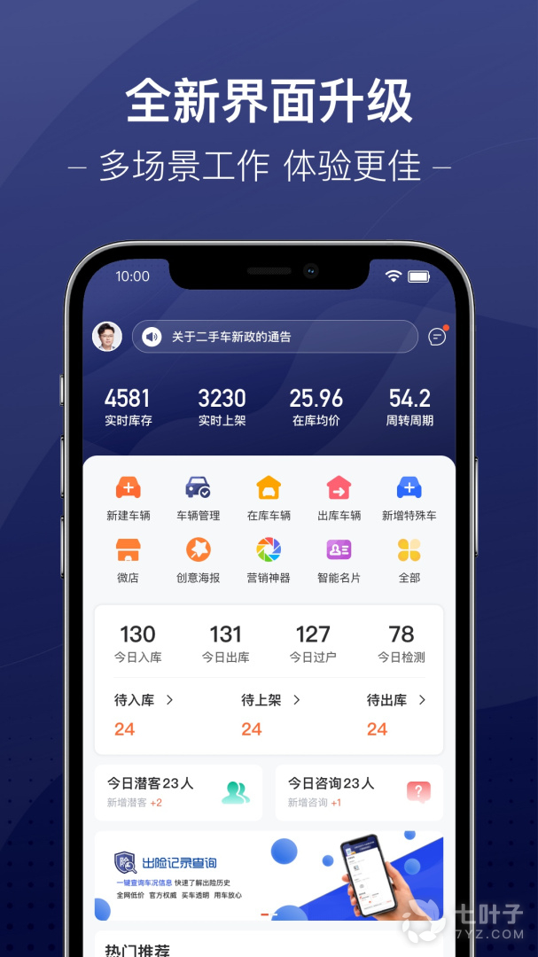 1、信车2024版是一个非常不错的二手车信息综合服务平台,二手车车商可以使用这款软件轻松地管理车辆信息,实时的统计库存,同时提供了客户管理、员工管理、上架管理等功能,需要的可以来信车2024版进行使用