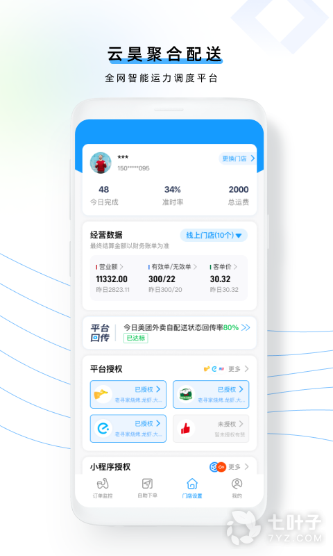 云昊聚合送是一款专业的配送服务平台,需要通过配送授权才能够使用,通过门店信息、平台授权和配送授权等操作,打造全渠道订单管理和配送服务,实时进行多方面数据管理,一键轻松派单,并且可以管理订单,即可安装使用。