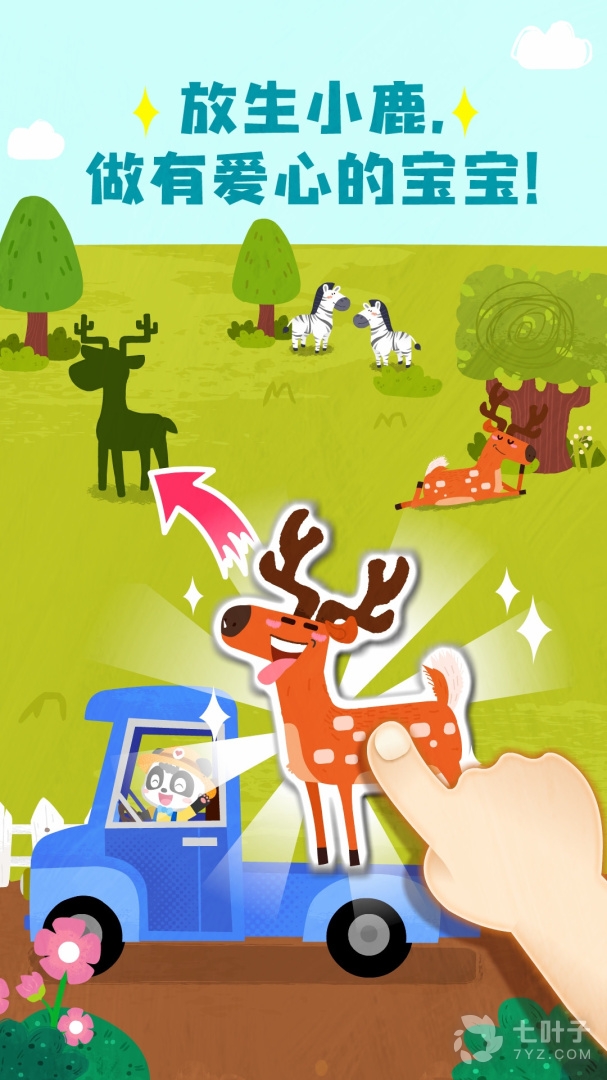 经过治疗和照顾,小动物恢复了健康。宝宝开动卡车,把它们送回大自然,那里才是它们的家。我们要保护自然,爱护动物!