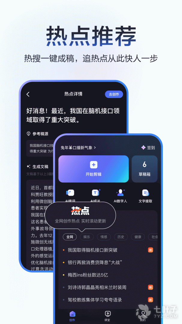 2、热门推荐,热门搜索一键进入草稿,追上热门人物更快一步。