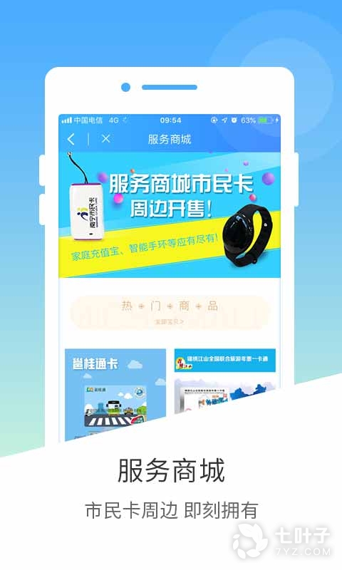 5、服务商城:购买不记名卡、家庭充值宝、智能手环等;