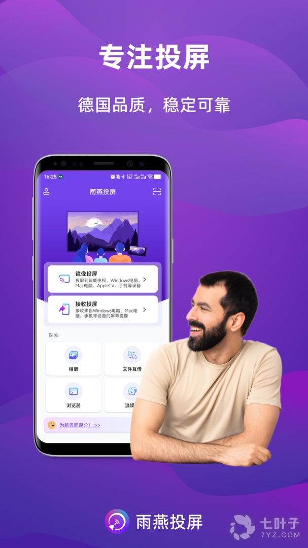 1、雨燕投屏手机功能强劲,支持一键同步PC端功能,雨燕投屏使用无需USB数据线就能实现手机屏幕一键镜像到电脑、电视等,开会不用愁,一边操作ppt一遍演示,还可以手机画面和电脑画面一起演示