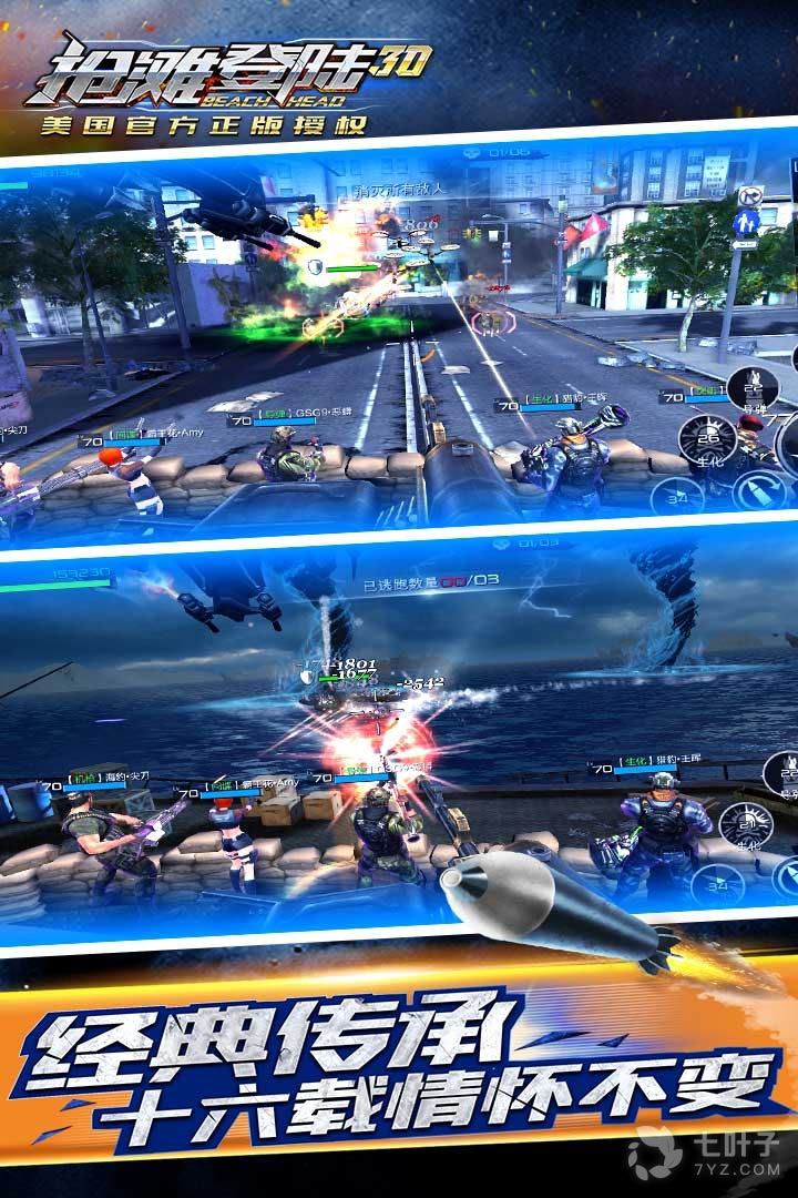 5、抢滩登陆3D在游戏中不止呈现出了极为丰富的战场让玩家可以在超多的场景中享受射击的快感,更通过海、陆、空三方位的敌人,让玩家体验到立体化战争的激情。手持机枪的士兵、肩抗火箭炮的精英、强大的装甲车、汹涌来袭的战机、庞大的战舰……当无数敌人布满海陆空,用手中枪炮横扫过去,带来无尽的毁灭,真正的战争降临,一切由你掌控