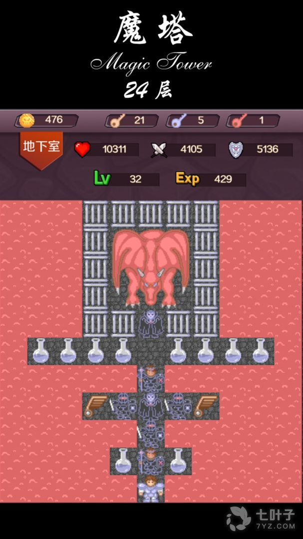 魔塔24层是一款复古像素风格的冒险游戏。关卡总共24层,你要击杀各层的小怪及boss,增强角色的属性、收集钥匙以及各类神秘的道具,不断让自己变强,成为拥有神之血裔的勇士!游戏中杀敌策略需要先思后行,方能顺利通关。