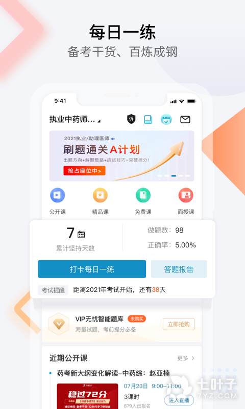 1、用户们可以为了准备考试更好的进行复习和学习,丰富的题库可以更好的正对性的学习,一对一的课程推荐让用户们可以更好的学习