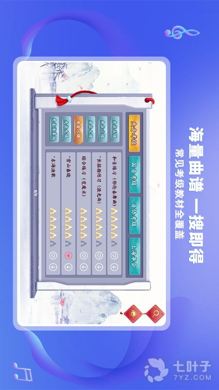 2、易古筝智能陪练,采用可视化陪练方式,让学习者从此爱上练习;并采用了三大曲库加强学习能,技法曲库,培养基本功;考级曲库,专业考试;流行曲库,技法学习兴趣