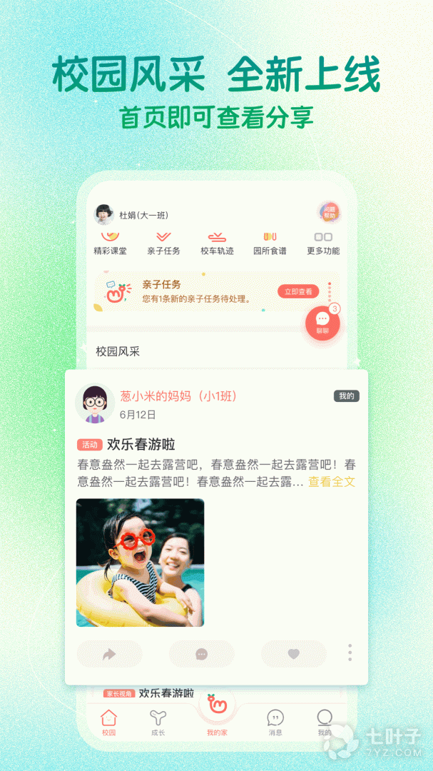 2、家长与家长互动,校园精彩活动视频,校园通知等等