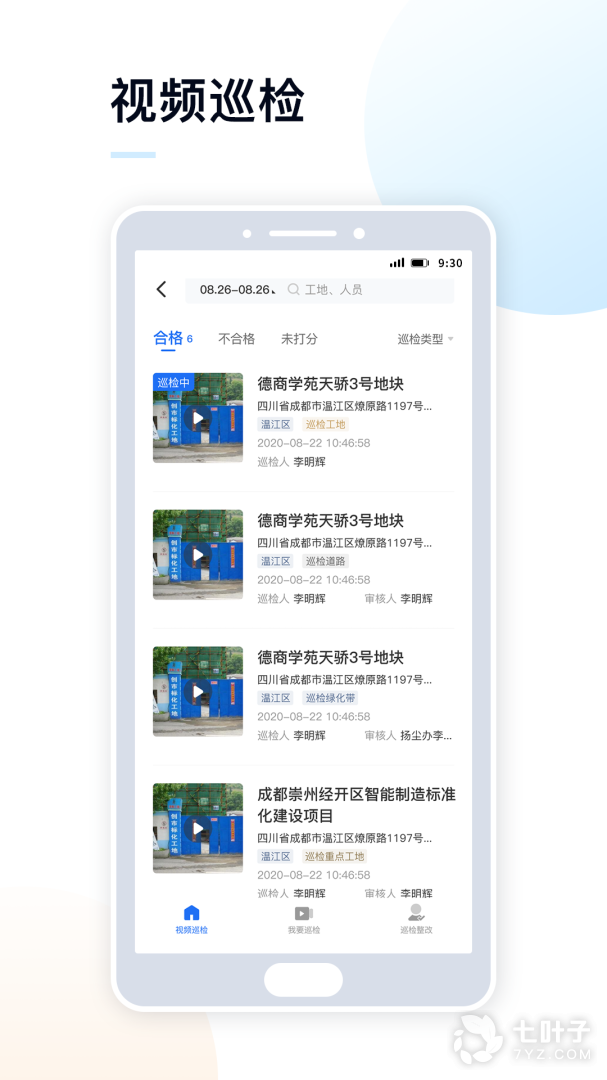 4、地图巡检和巡检概览,一图了解工地现场质量安全问题的分布和整改情况,自由切换巡检员,查询各工地现场巡检结果