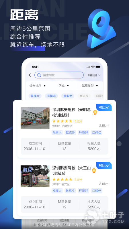 4、支持根据距离、价格、评价等信息综合筛选驾考学车服务,方便做出选择;
