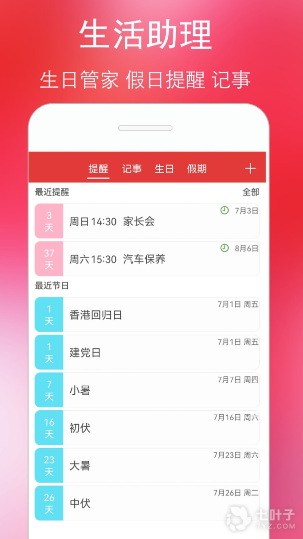 强大的天气,记事,提醒功能,生日,备忘,纪念日再也不会忘记。