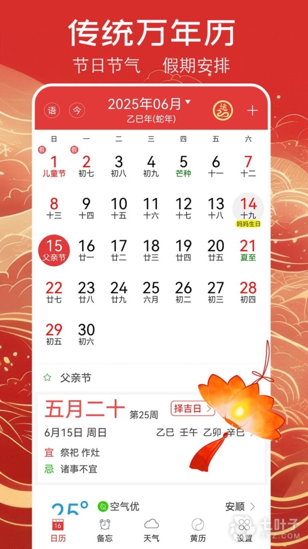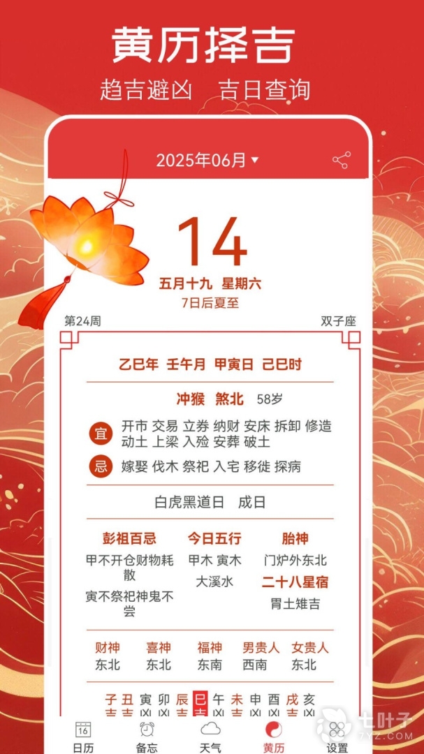 3、APP集日历查询、黄历阴历、吉日查询、放假日期、节日节气信息、天气预报、公历农历等功能为一体,帮助用户避凶趋吉