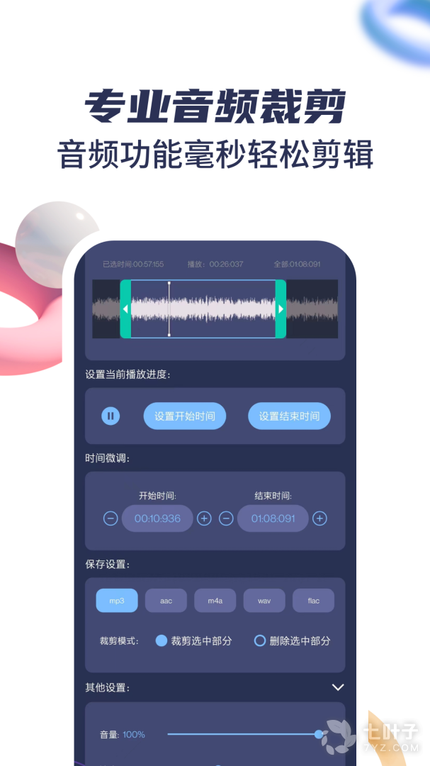 ·专业的音乐剪辑:支持音乐剪辑,合并,混音、提取等高级功能,轻松玩转铃声,音乐