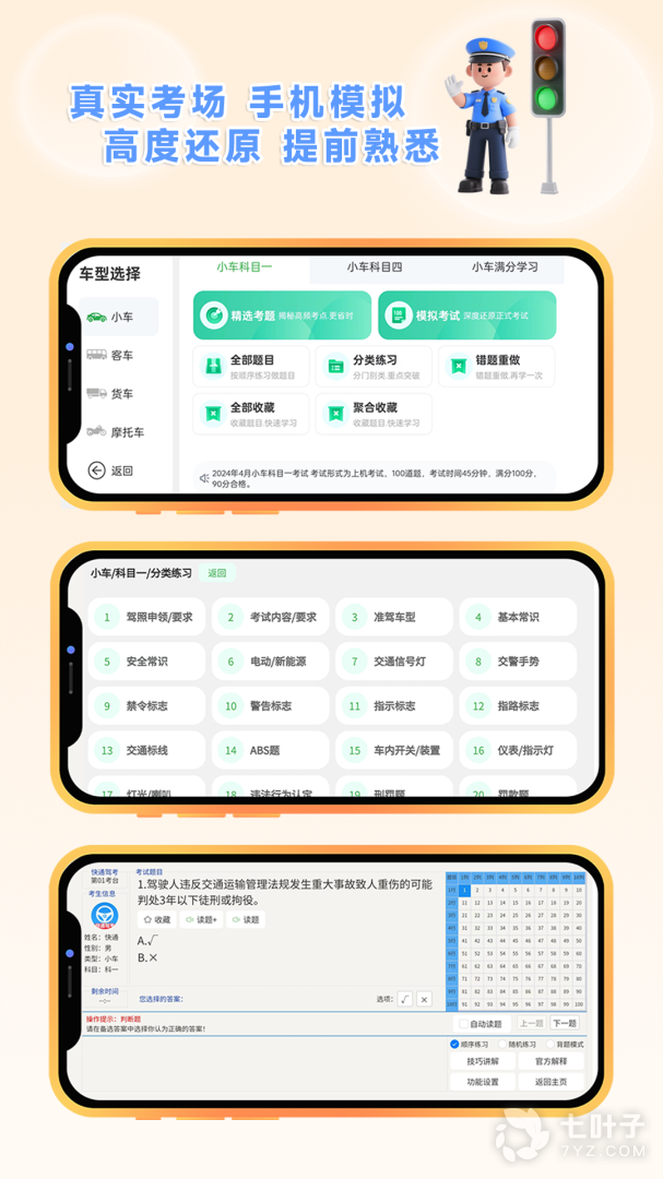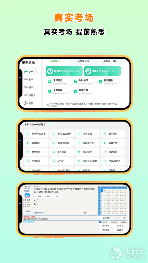 1、快通驾考是款专门为想要考取驾照的学员们打造的科目一和科目四练习学习软件。用户可以通过这款软件进行科目考试复习,提供全方面的考试题库,只要熟练掌握考题就能轻松过关,非常好用,不容错过