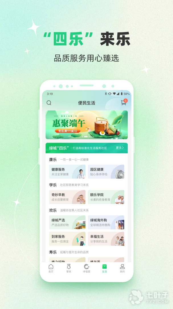 3、如果你的小区物业是绿城,那么你的优质社区业主APP就是这个APP-绿城生活最新版,这里提供了最近的附近所有衣食住行在线购物渠道,也可以在线缴费进行服务,还可以找到办事功能,给业主提供方便的生活