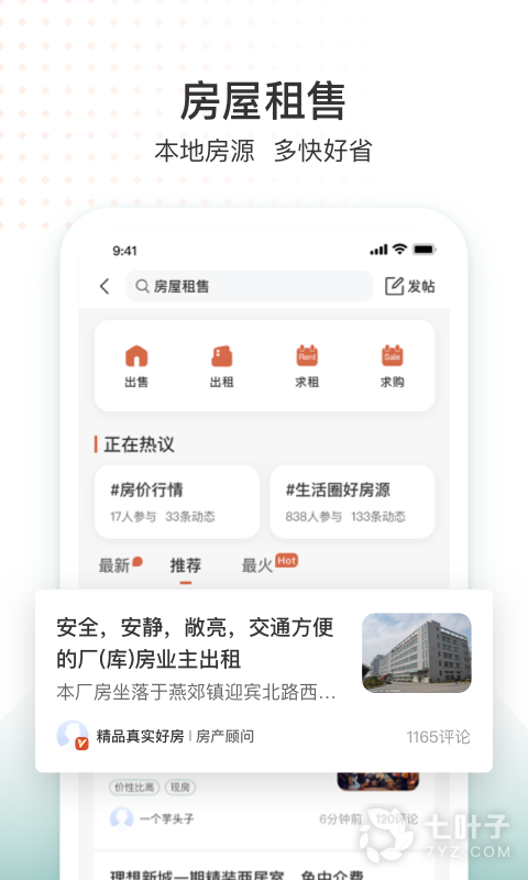 4、支持多种求租求购功能,同时划分了出售、出租以及求租与求购的信息类别