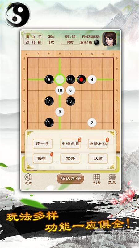 2、围棋游戏专为广大围棋爱好者设计开发,用户可以在围棋游戏内自由对弈或者升降合适的围棋等级进行对弈