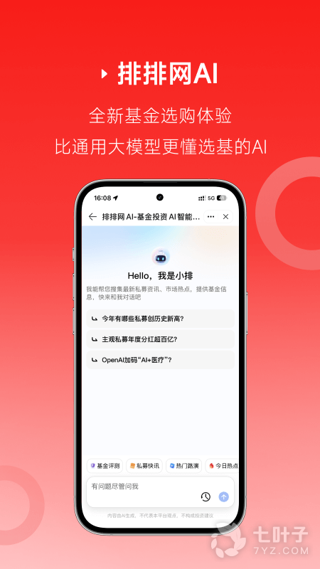 2、排排网财富2024版是一个专业化的金融理财买卖基金平台,平台为广大的基金投资者提供最新的金融市场行情,为您把握投资良机,通过ai大数据算法为投资者制定基金组合策略,需要的可以来排排网财富2024版进行使用