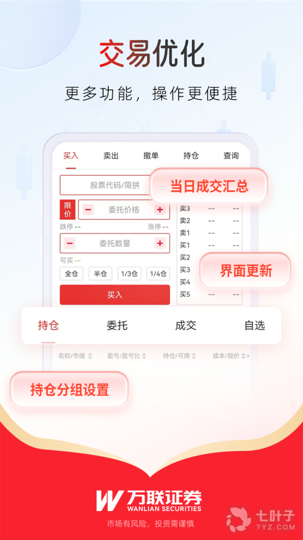 3、股票证券开户交易软件,专为投资理财的用户设计的在线证券交易理财平台,查看最新的交易情况,价格波动以及自己的财产变化,及时的买进卖出,通过中间的差价你就可以赚钱,真实有效的理财投资,就在万联证券万联e万通最新版