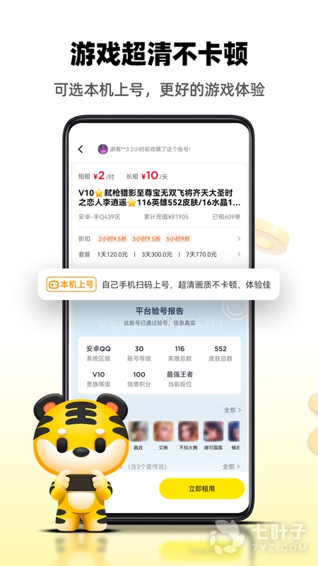 各种好玩的游戏全都有,用户们可以在线租赁不同等级的游戏帐号。