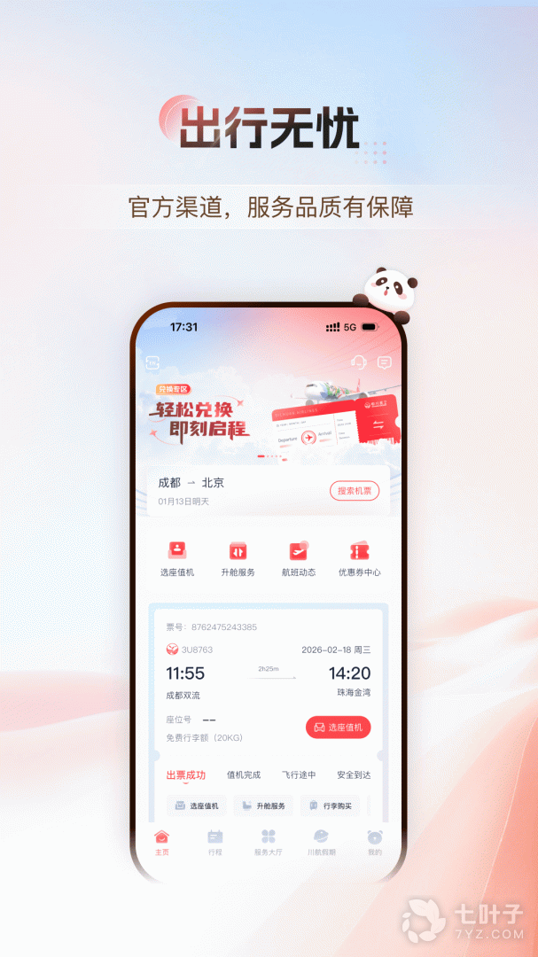 四川航空官方App,注册即送300里程!手机订票,预订本人机票,有机会获得300元、200元、100元购物卡。