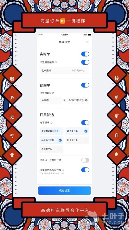 支持接取预约订单,可以让司机合理的安排接单抢单时间,不错过任何订单;