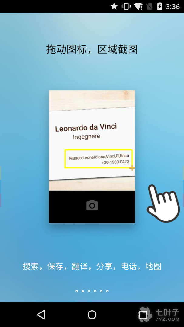 设置好了,退到桌面。这时候会在桌面出现了个圆圈,就是fooview图标。按住这个图标往任何的位置一拉,我们看到会出现个方框是红色的。这时候不会截图,稍微等待它变成黄色然后拖动位置即可截图。如果你的图中有文字,那么等你松开fooview图标就会被提取出来。然后根据自己的需要选择相应的选项即可。