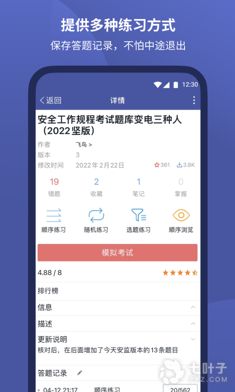 3、磨题帮会保存你的每一次考试及练习的记录,你随时可以浏览你的这些答题记录,查看你答错的每一道题目。你还可以重复练习那些你答错的题,或那些你收藏的题目