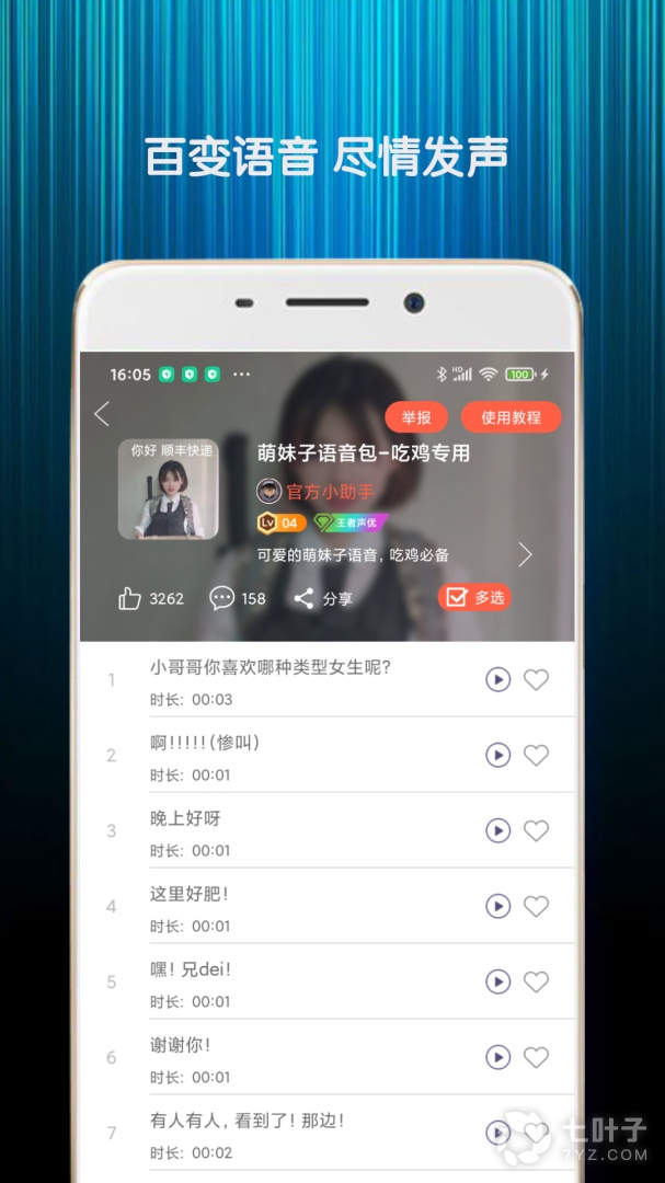 海量真人语音包,给你在游戏聊天中增加更多乐趣,吃鸡、王者等热门游戏,日常聊天、热歌清唱,总有一款语音包适合你
