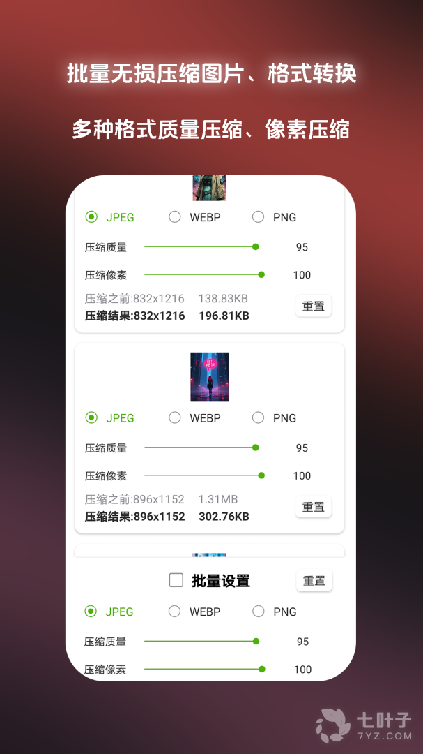 5、压缩图片,我们提供了2种压缩图片的方式:图片像素和图片文件大小
