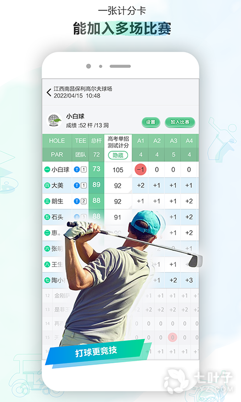 2、它具有独特的高球游戏计分工具,多种竞技游戏玩法,轻松计算成绩,让你打造属于自己的高球朋友圈,玩转高尔夫运动,敬请使用