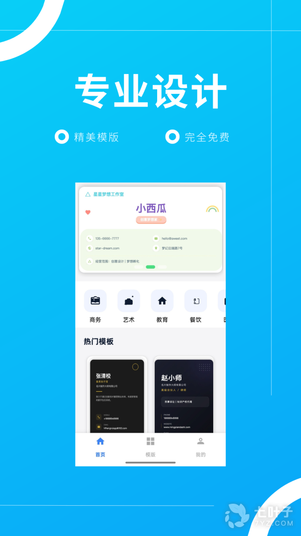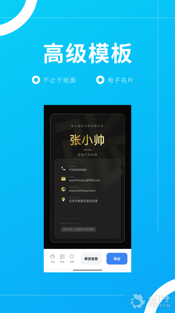 2、名片制作大师app专业的名片制作工具,名片制作大师app提供海量专业的名片模板,无论您是商务还是个人在名片制作大师app中都会找到您想要的名片模板