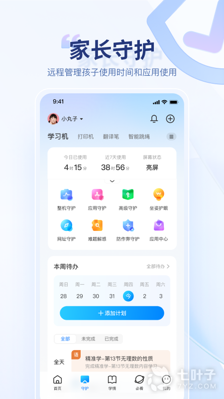 1、讯飞ai学,讯飞智能学习机管理app,一键绑定设备,轻松管理控制,具备作业发布、作业批阅、学习机设备管控等功能,记录孩子学习情况,让学习更省心