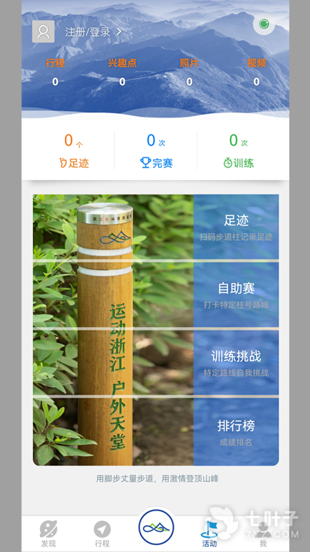 一款户外运动工具app,为用户提供“环浙步道”的官方信息服务,包括步道地图、行程推荐、步道相关的自然人文、体育旅游等信息,软件提供步道足迹打卡、线路导航和gps轨迹记录等功能,同时用户使用本app可对步道的行程记录进行点赞、收藏、评论、分享和轨迹下载的操作。