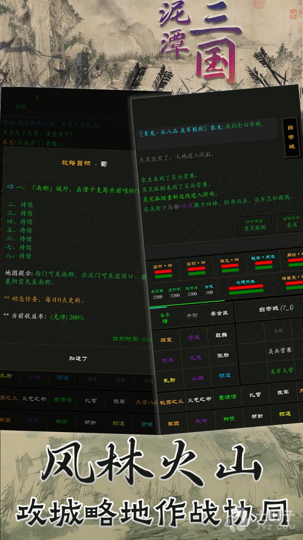 3、泥潭三国,经典的文字三国策略游戏,玩家将加入这场文字战斗,进入三国世界,几十万文字营造三国乱世,从破黄巾军到各自建国的这段历程任你来体验吧
