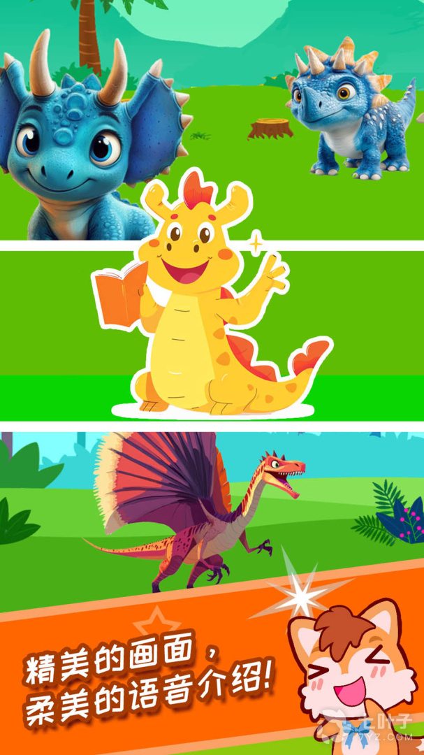 3、主要是通过彩色的画面和柔美的语音来给小朋友介绍关于恐龙的知识。更有精心制作的动物拼图游戏,可以培养宝宝的观察力和学习能力