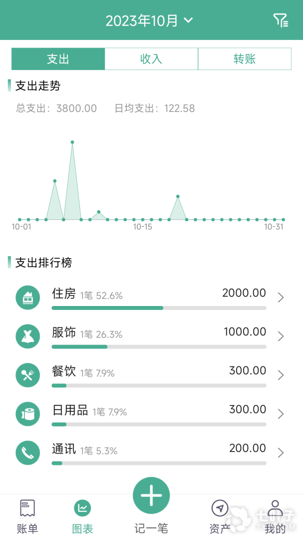 3、能够详细记录家庭的每一笔开销,以周期的形式进行汇总,以图表行驶进行展示,在这里你能了解你每天每月的消费状况,让用户随时了解账本,更加有效理财