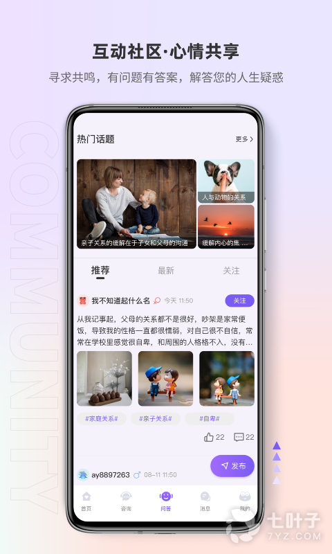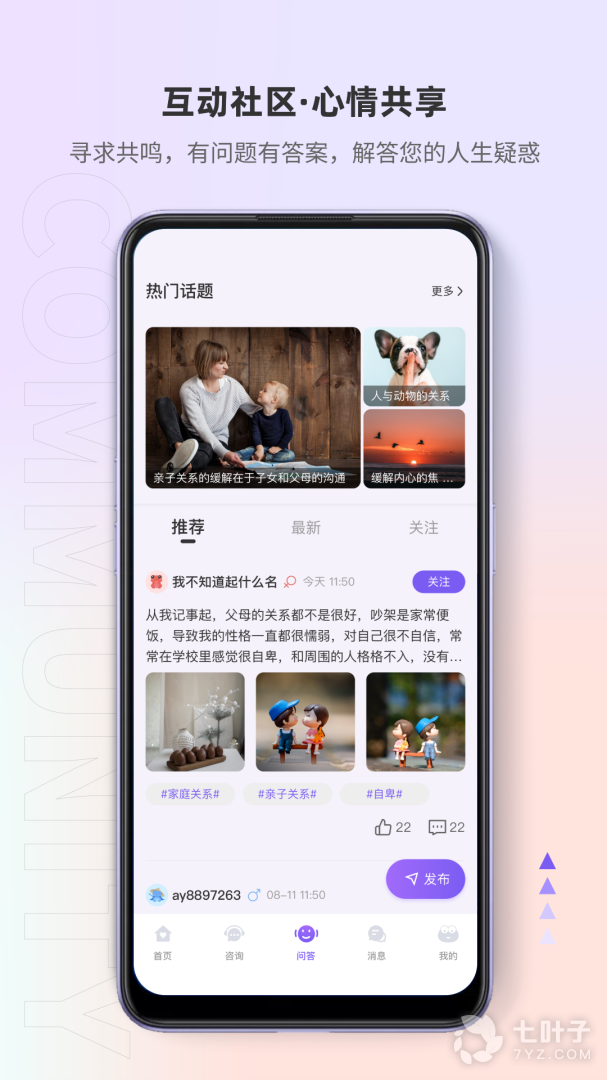 4、互动社区/心情共享,寻求共鸣,有问题都可去求助