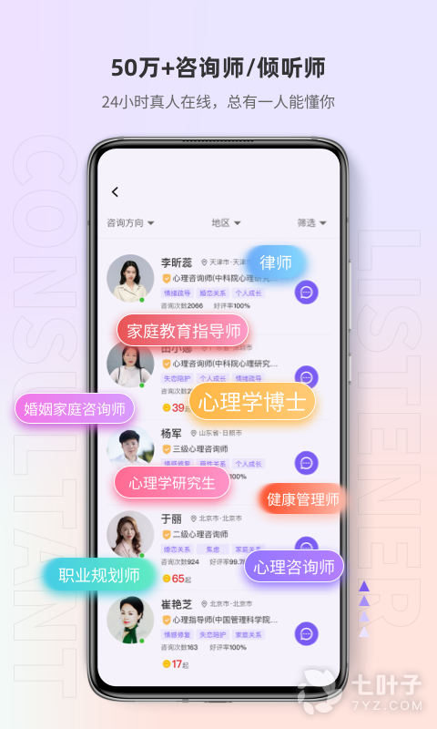 【心理咨询】心理咨询师等专业人士全天在线,抑郁焦虑、情绪压力、职场发展、失眠、社交恐惧、自卑等各类问题,多种选择,助您排忧减压;