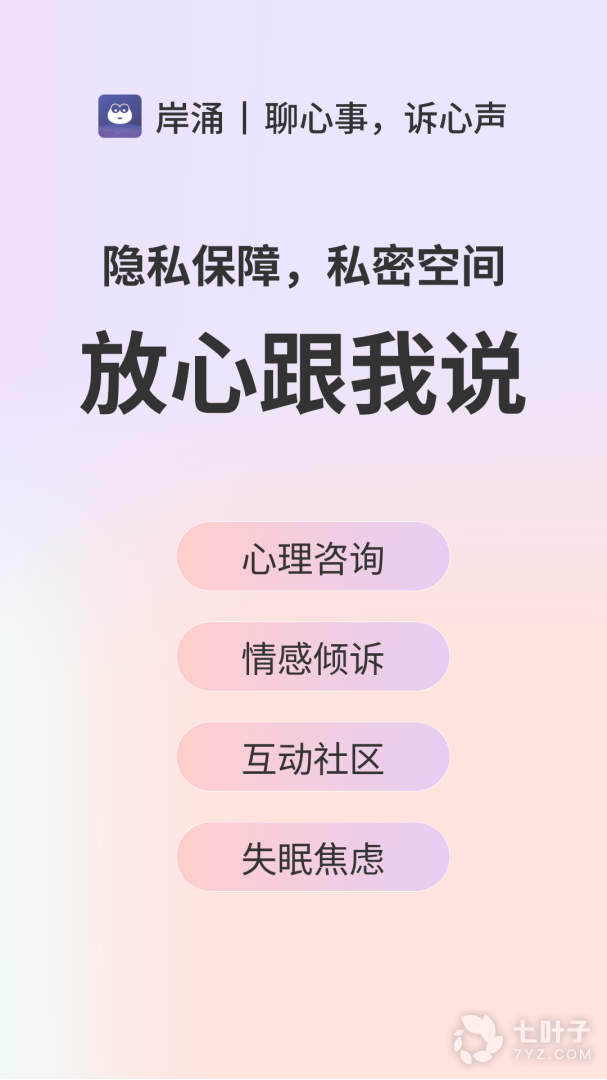 岸涌APP是一款全天候都有专业人士在线提供咨询服务的心理倾诉免费APP,提供了情感咨询、心理咨询、心理测试等多种功能服务,可以满足用户们的不同咨询需求;APP除了提供在线咨询服务外,还有助眠功能,比如心灵电台、助眠音效等,帮助你更快入眠!