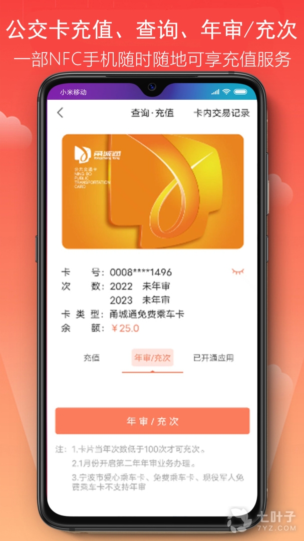 3、客户端目前支持通过手机自带的NFC近场通信功能实现市民卡、甬城通卡的余额查询、应用查询、交易记录查询、充值记录查询