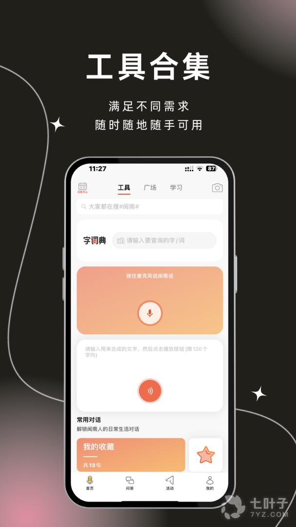 2、说咱闽南话是一款闽南语社交、短视频平台,平台拥有社交、短视频拍摄与发布、字典查询等功能,可以帮助用户更好的闽南语社交学习