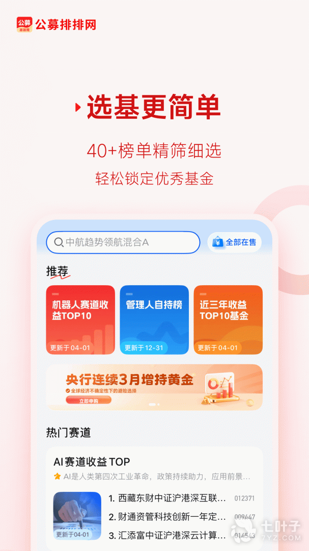 实时估值,业绩排行,灵活多指标排行筛选,帮您找到最适合您的好基金!
