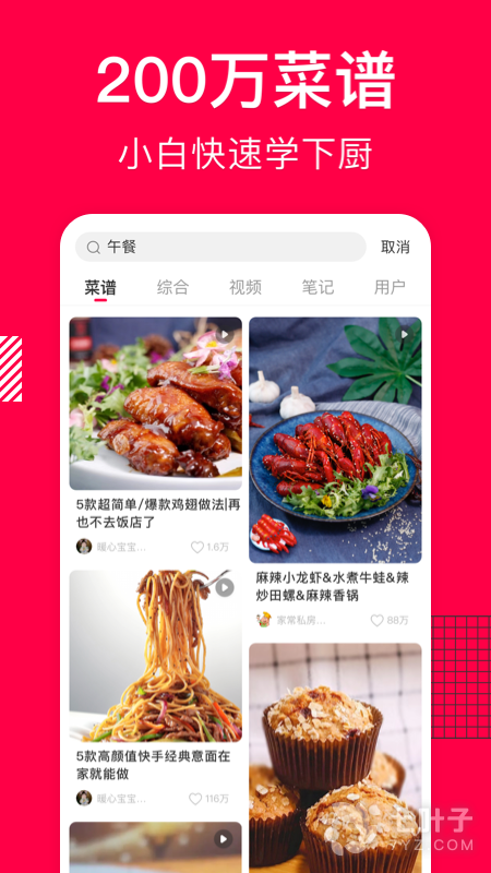 2、新增:百万菜谱视频,小白做菜更简单;