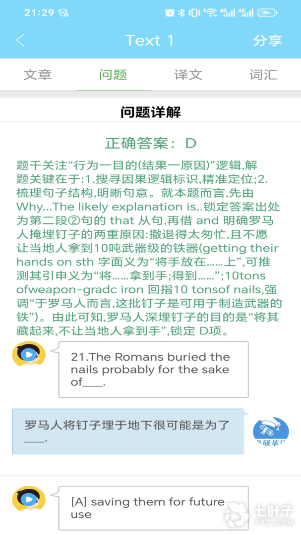 1、错题答案解析,当自己做题时候出现了错题那么就能及时查看这个题目的正确答案与解析