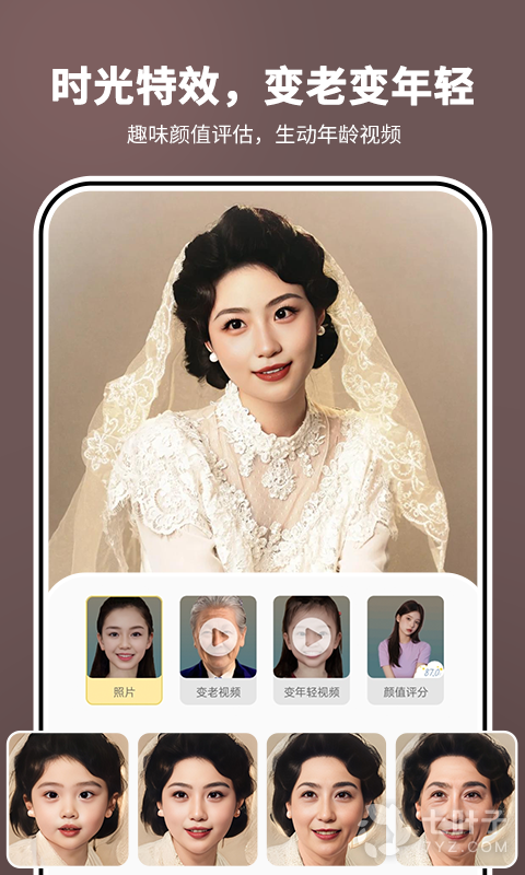 3、它主要是拍摄变老的特效的,不管你想变老多少岁都可以实现,而且还有不同的特效,不用的年龄效果是不一样的,而且还有不同的人物可以选择,都可以来试试,非常有意思的哦