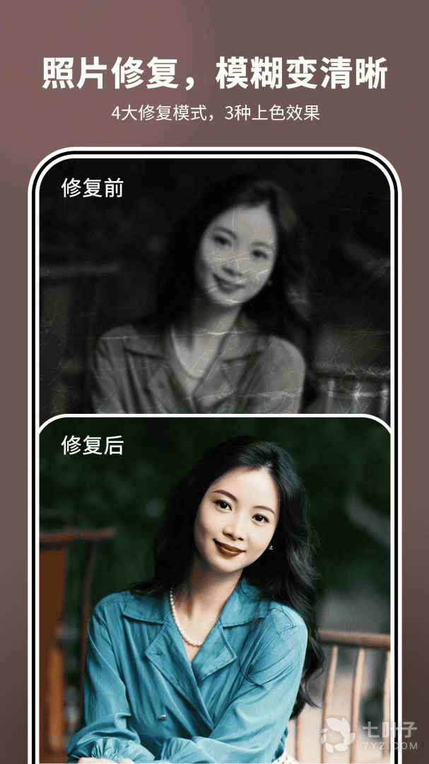 1、照片时光机功能强大,拥有图片修复功能,可以轻松修复老照片,图片无损放大,可以制作漫画图片效果