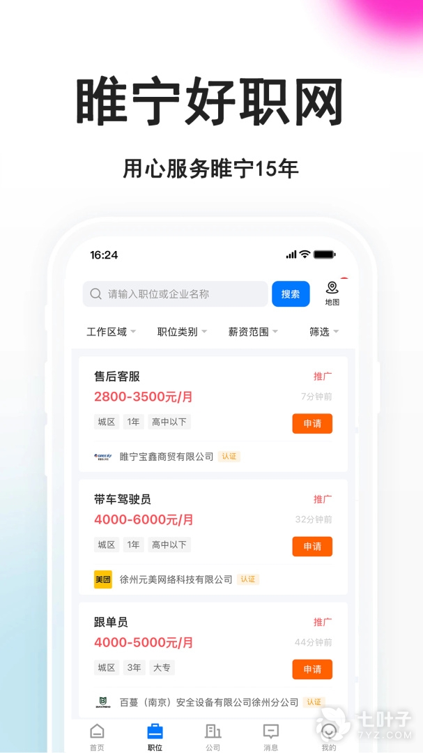 3、睢宁好职网各种职位的工作都有,总能找到让你满意的工作