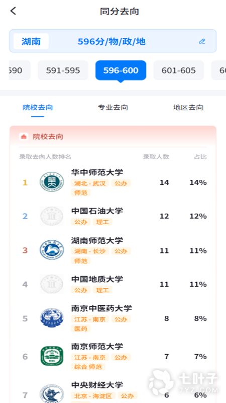 3、可查询全国2700+所院校在不同省份的招生预测分数线和名次线,基于高考大数据与人工智能算法进行特定学校与专业的分数线、排位线估计,评估考生录取概率