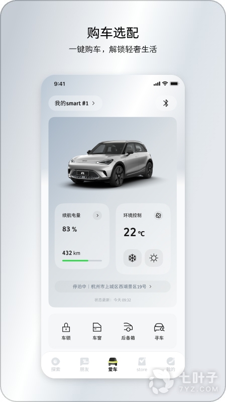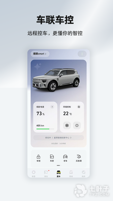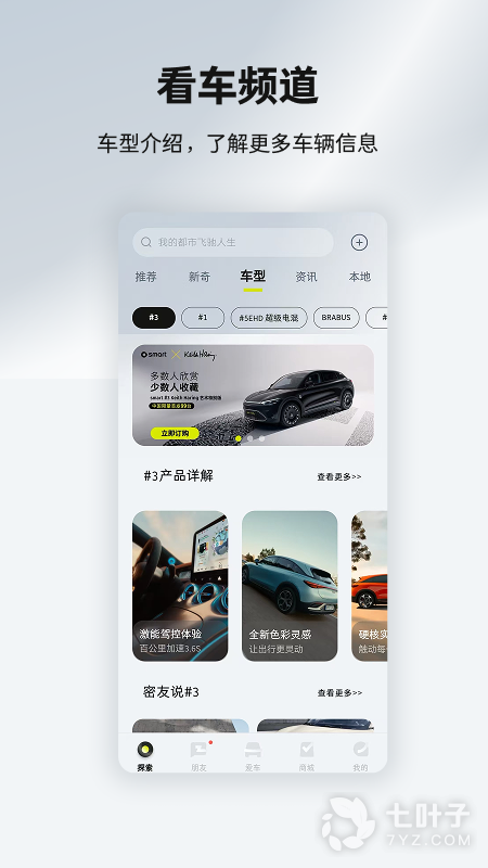 smart汽车是智马达汽车有限公司推出,软件拥有探索,朋友,爱车,我的等功能板块,可以给予用户更好的smart汽车互动交流体验。