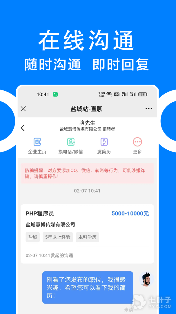 2、同城招聘下载,一款汇聚海量招聘信息的同城求职找工作小助手,通过同城招聘更多优质企业真实岗位在线沟通,即时回应更加高效,有需要就来下载
